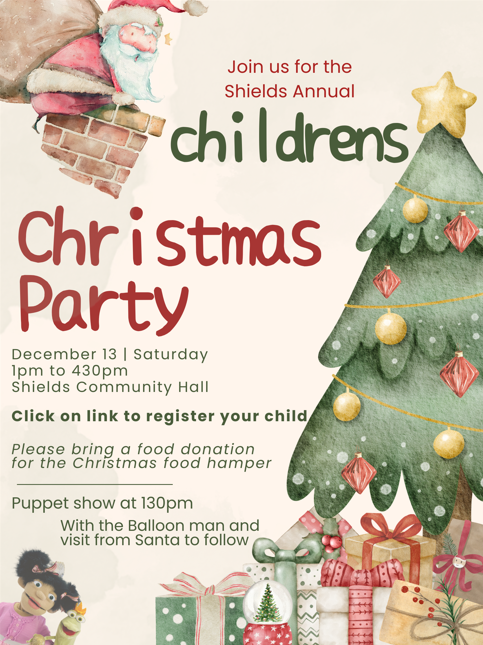 The Children’s Christmas party is taking place on December 13th from 1:00pm – 4:30pm.